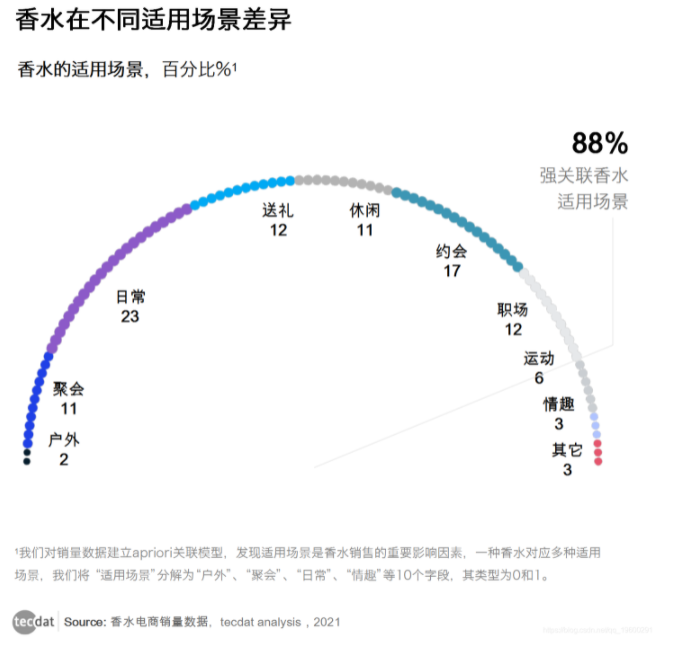 在所有产品中,用于日常的使用场景占多数,其次是约会,聚会和送礼,用户更喜欢日常类香水 fun88乐天堂。