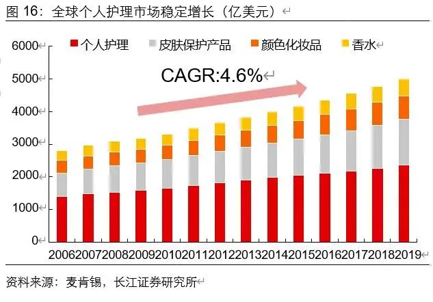 日用市场:全球日化市场稳定增长,相关香精香料需求稳定上行。据 Data Bridge 预测,随着洗涤剂功能化需求提升以及新兴市场需求快速增长,预计全球液体洗涤剂市场规模仍有望保持高速增长,相关洗涤用品香精香料需求有望提升。全球化妆品市场在过去能够保持稳定增长,从 2005 年到 2019 年,全球化妆品市场销售额从约 2670 亿美元增长到约 5000 亿美元,年均复合增速约为 4.6%。化妆品市场需求稳定增长,相关日化型香精香料产品市场需求有望维持稳定增长。