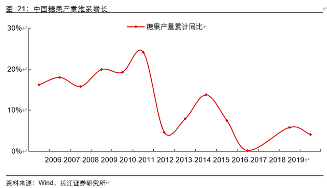食用市场:中国软饮料及成品糖产量整体稳中向上。据中国香化协会数据,随着我 国食品工业快速发展,我国食用香精香料需求快速增加,占整个香精香料市场比例 已经超过 50%。今年疫情扰动了短期消费,而中长期不改行业趋势。未来,国内食品工业有望保持增长,带动我国农副食品加工、食品制造和饮料制造子行业增长, 食用香精香料需求仍有望维持较高增速。下游产品产量中,近几年中国软饮料和乳 品市场维持 5%左右增长,相关食用香料需求稳定增加。中国糖果产量整体维持稳定,糖果用香料仍能维系稳定增长。随着居民消费水平提升,软饮料和乳品产量仍 有望维持增长,软饮料和乳品相关香精香料需求有望提升。