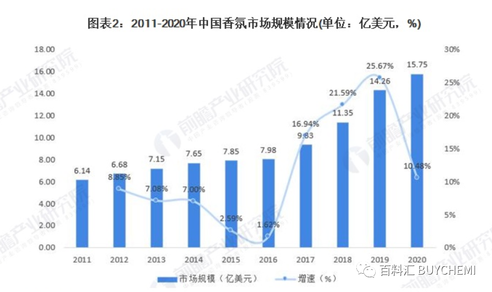 2011-2016年,由于使用香氛在国内还未形成普遍的消费习惯,故市场规模相比其他日化子类较低。但是,2016年后,随着中产阶级人口逐渐增多,香氛产品作为能够衬托出生活品质的产品,香氛市场销售量呈现爆发式上涨。与此同时,在个性化的当下,气味个性化成为了消费者展现自我的一种表达方式,对香氛的需求也逐渐增多,2020年我国香氛市场规模达到了15,75亿美元,疫情冲击下市场规模同比增长率仍然达到10,48%。 fun88乐天堂官网是什么。