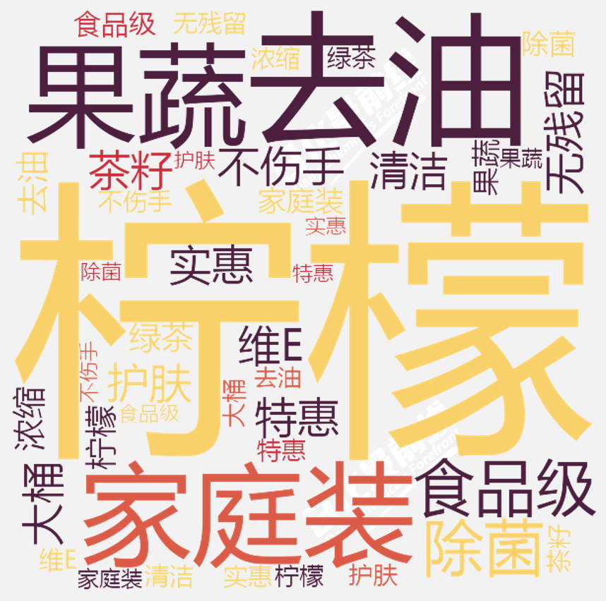热销洗洁精产品大多强调其去油洁净不伤手食品级的功效 fun88乐天堂,另外柠檬香味是最主要的香味,与此同时家庭大桶装,实惠特惠也是线上热销产品的主要卖点。