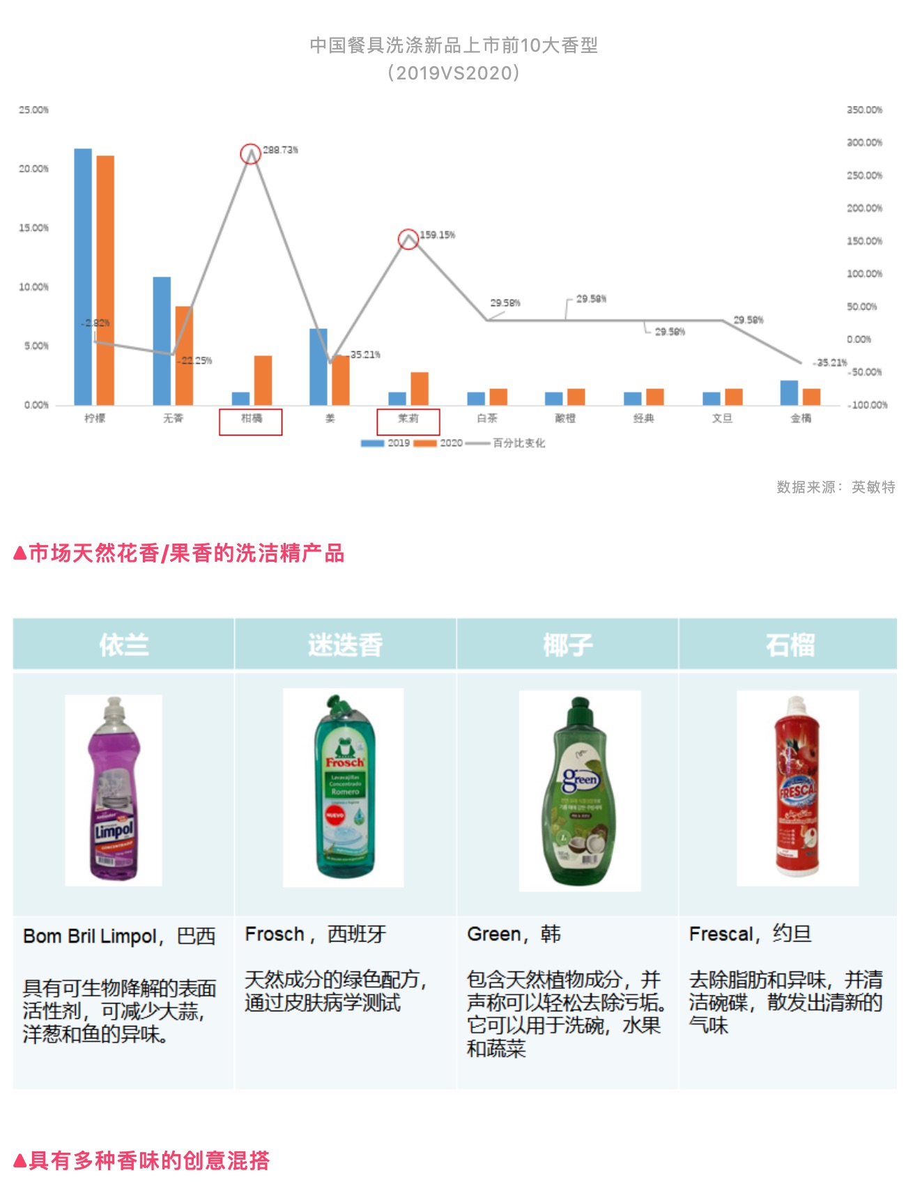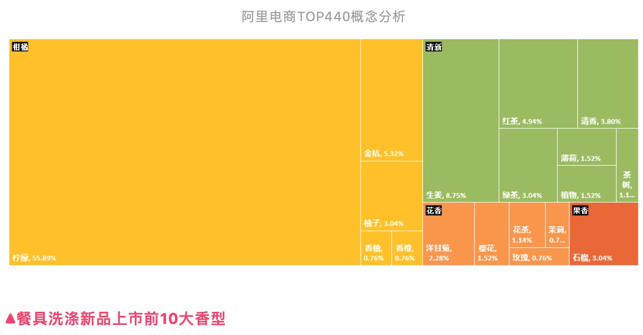 鉴于传统餐具洗涤品的成分和香味单一特性 乐天堂FUN88,从线上数据可以推测出主流的香味/成分概念依旧是柠檬,生姜大类。