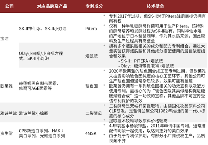 图表: 国际美妆集团明星单品专利成分一览表