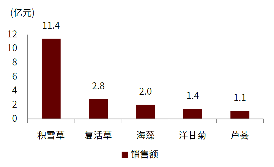 资料来源:淘宝网,中金公司研究部;注:图中销售额数据口径为天猫旗舰店销售额第一单品