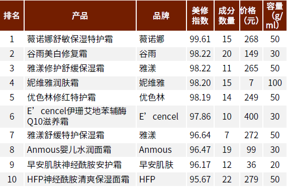 图表: 消费者最关注的精简产品中TOP10面霜