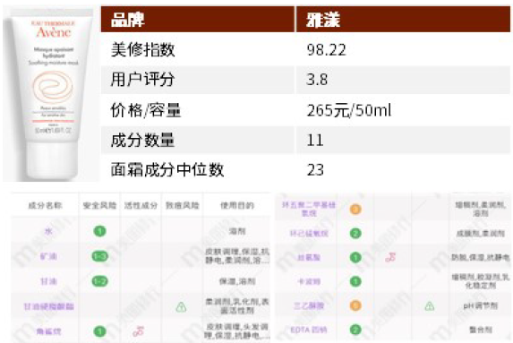 图表: 典型精简产品 - 雅漾修护舒缓保湿霜