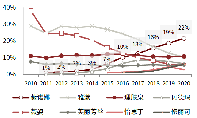 图表: 薇诺娜市占率快速提升