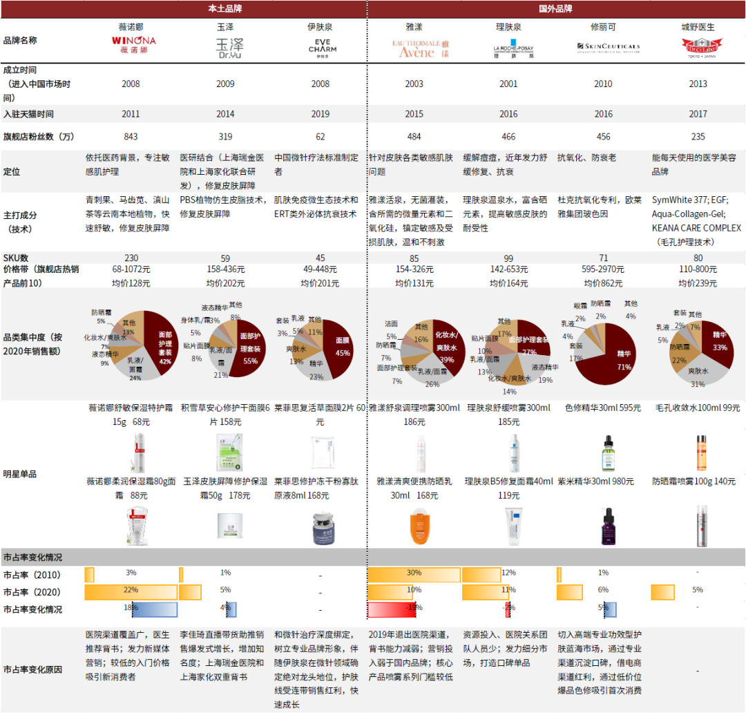 ► 医学背书及品牌化推进:两个品牌均由皮肤科医生开启品牌化进程、梳理产品体系,并借助皮肤诊所等专业渠道打开市场。
