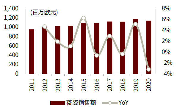 图表: 薇姿全球销售额增长情况
