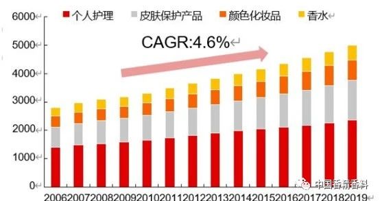 图3 全球个人护理市场稳定增长(亿美元)