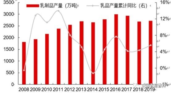 图6 中国乳品产量维系稳定增长