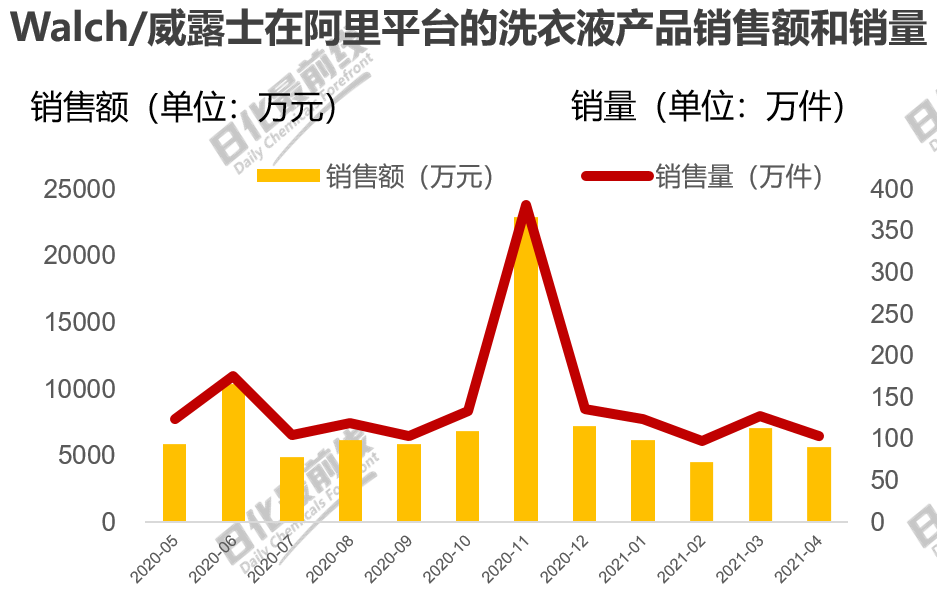 2021年1-4月阿里平台Walch/威露士洗衣液产品销售额超过2,3亿元,市场份额约为10,5%,销量超450万件;主要热销产品为威露士除菌洗衣液以及除菌内衣洗衣液。 乐天堂FUN88。