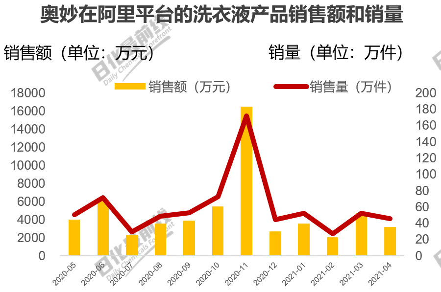 2021年1-4月阿里平台奥妙洗衣液产品销售额为1,3亿元,市场份额约为6,1%,销量超176万+件;主要热销产品为除菌除螨的活性酵素洗衣液以及全自动樱花味洗衣液。 fun88乐天堂官网。