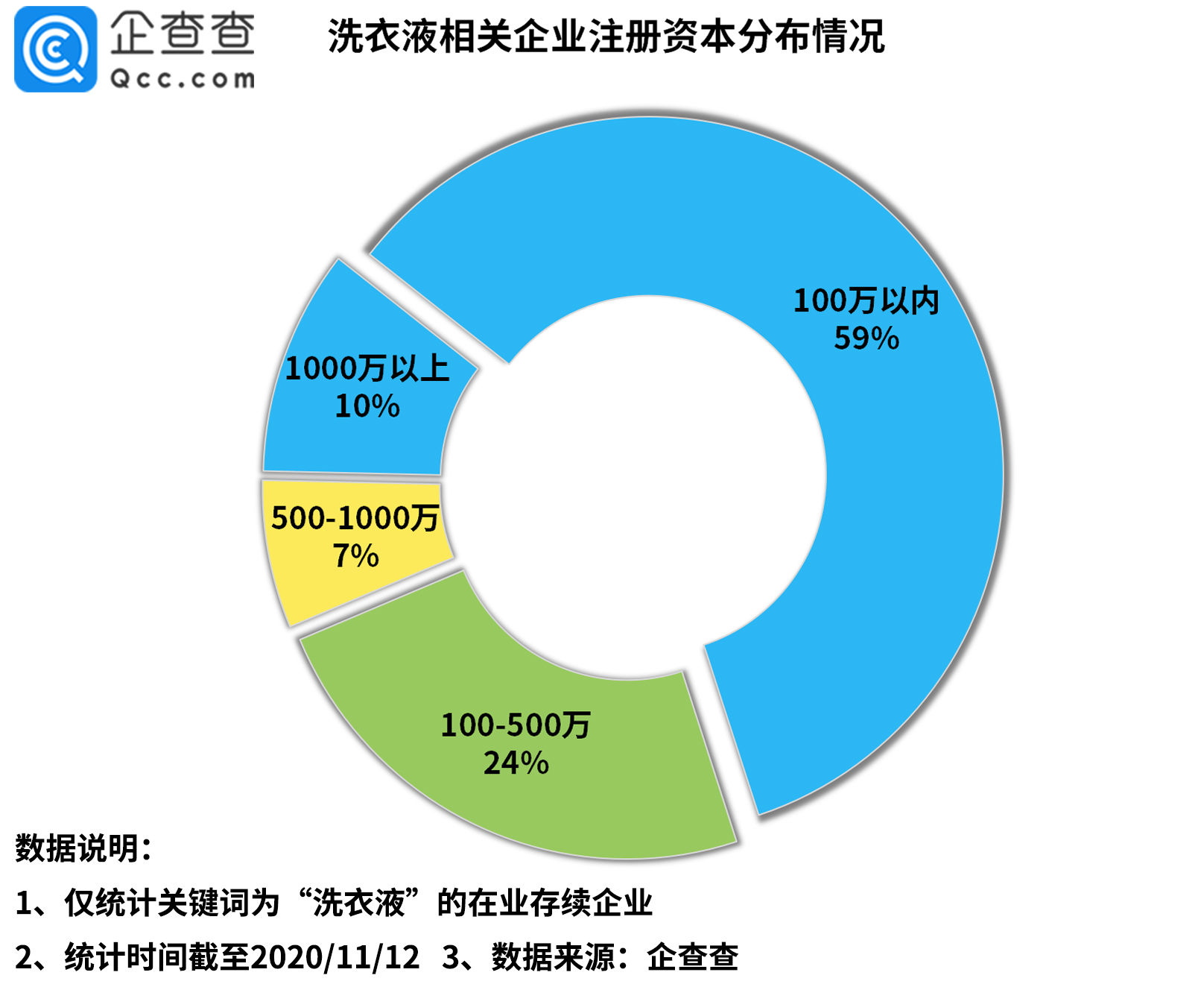从注册资本来看,企查查数据显示 乐天堂FUN88,我国超8成的洗衣液相关企业注册资本都集中在500万以内,其中59%的企业注册资本在100万以内,24%的企业注册资本在100-500万这个区间,而注册资本在1000万以上的则占总量的10%。