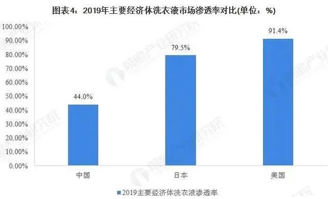 2019年,美国洗衣液市场渗透率为91 fun88乐天堂官网,4%,日本洗衣液市场渗透率为79,5%,由此可见,我国洗衣液市场仍具有较大提升空间。。