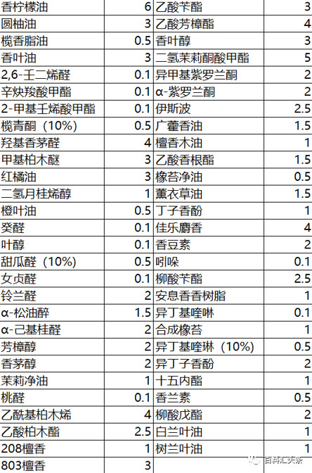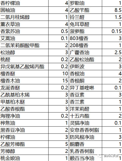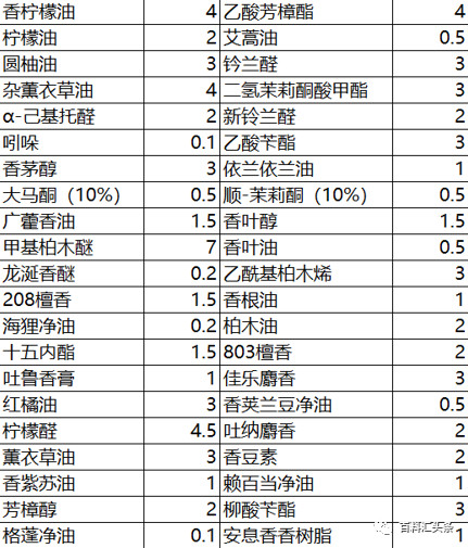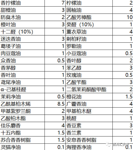 3、素心兰型香精配方举例——素心兰型香精配方(质量份)