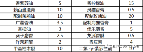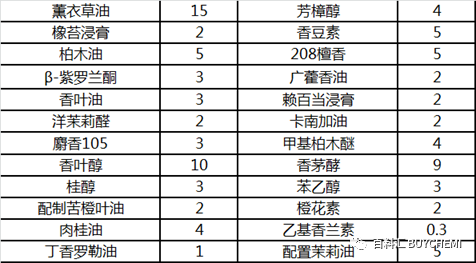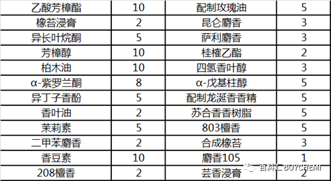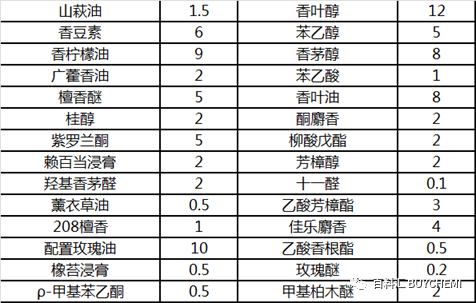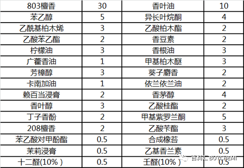 2、檀香、檀香-花香复合型香精配方举例——檀香香精配方(质量份)