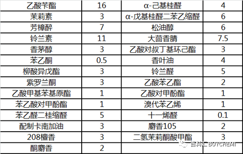 3、索心兰型香精配方举例——素心兰型香精配方(质量份)