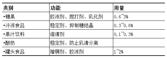 对酱油、醋及腌渍等酸性强的食品要比普通食品多加20%,效果更好;加入食品中若超过最适浓度,则可口感下降,故有一定的自我限制性。