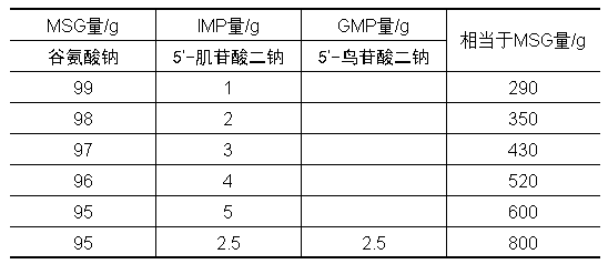 用2.5%IMP+2.5%GMP+95%MSG(4.7-7kg),可代替45kgMSG。