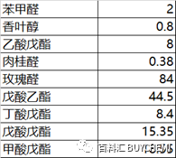 羰基化合物:乙醛,丁醛,异戊醛,2-糠醛,己醛,反-2-己烯醛,反-2-反-4-己二烯醛,庚醛,顺-2-庚烯醛,辛醛,壬醛,反-2-壬烯醛,癸醛,十一醛,苯甲醛,苯乙醛,肉桂醛,香芹盖烯醛,1-戊烯-3-酮,2-庚酮,1-辛烯-3-酮,3-壬烯-2-酮,2-十一酮,α-紫罗兰酮,β-紫罗兰酮,香叶基丙酮 fun88乐天堂,6-甲基-5-庚烯-2-酮等。