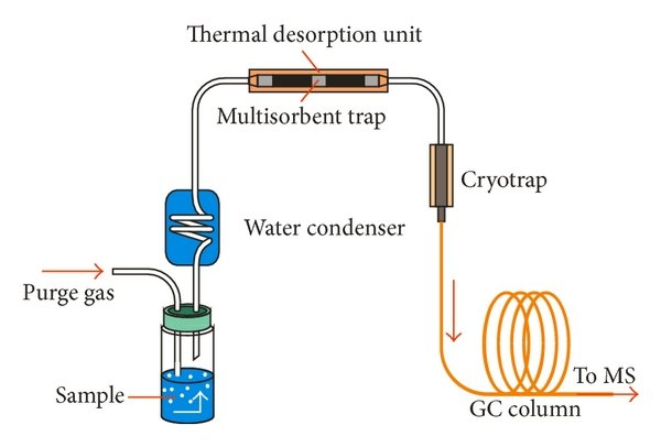 吹扫和捕集方法(动态技术)的基础是用惰性气体(通常是氦气或氮气)吹扫样品(液体或固体),然后将挥发性化合物吸附在捕集器上,捕集器立即被加热,将其解吸到气相色谱仪进样器中,有许多吸附剂,如Porapaks,Chromosorbs或Tenax系列,都能满足正确的热解吸的必要要求,然而Tenax系列(基于2,6-二苯基对苯二胺的聚合物)非常适用于水醇样品,如葡萄酒或类似的饮料 fun88乐天堂官网是什么,在这个意义上,已经提出使用吹扫和捕集方法来分析水果和果汁以及酒精饮料。
