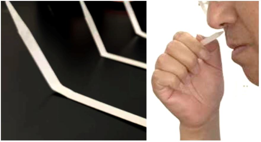 其次,对各种合成和天然原料进行嗅觉,熟悉这些原料的气味特征。在对香精成分进行嗅闻时,用闻香条来识别香精成分的气味特征。将闻香条浸入每一种原料中,然后仔细地闻气味纸片,以识别这些成分的味道,如图3所示。