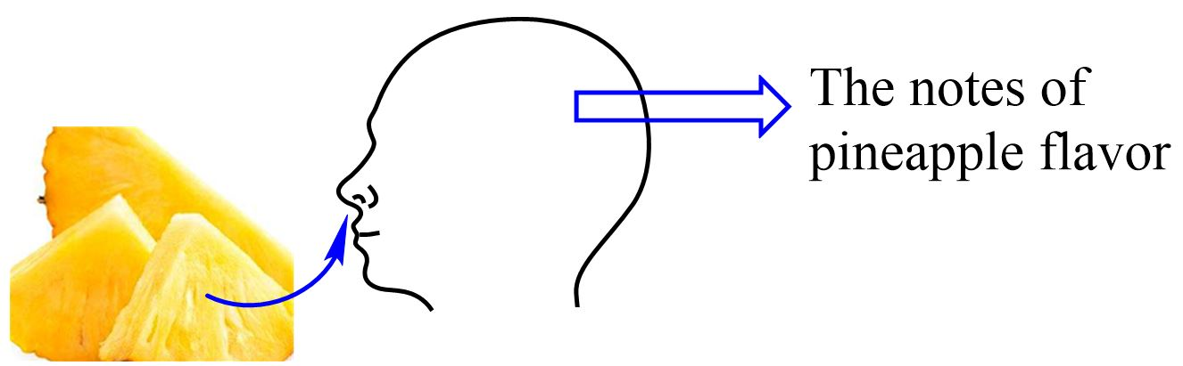 实验中采用香韵法模拟菠萝的香味。对味道的感知涉及到人类嗅觉和味觉的综合。通过人类的感官,可以识别出多种口味。首先对菠萝果实进行闻、尝,识别菠萝的气味特征和香味,如图2所示。