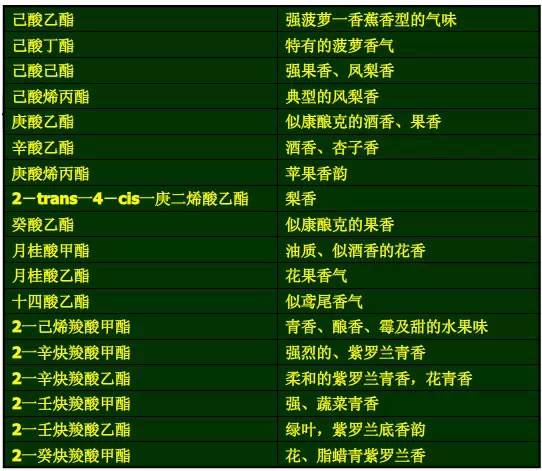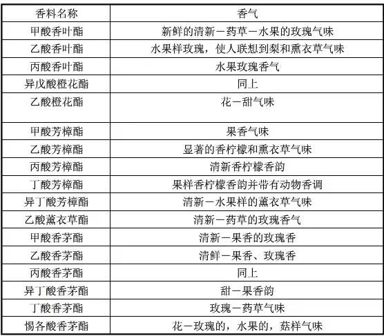 常用甜味香精香原料的香气特征汇总表